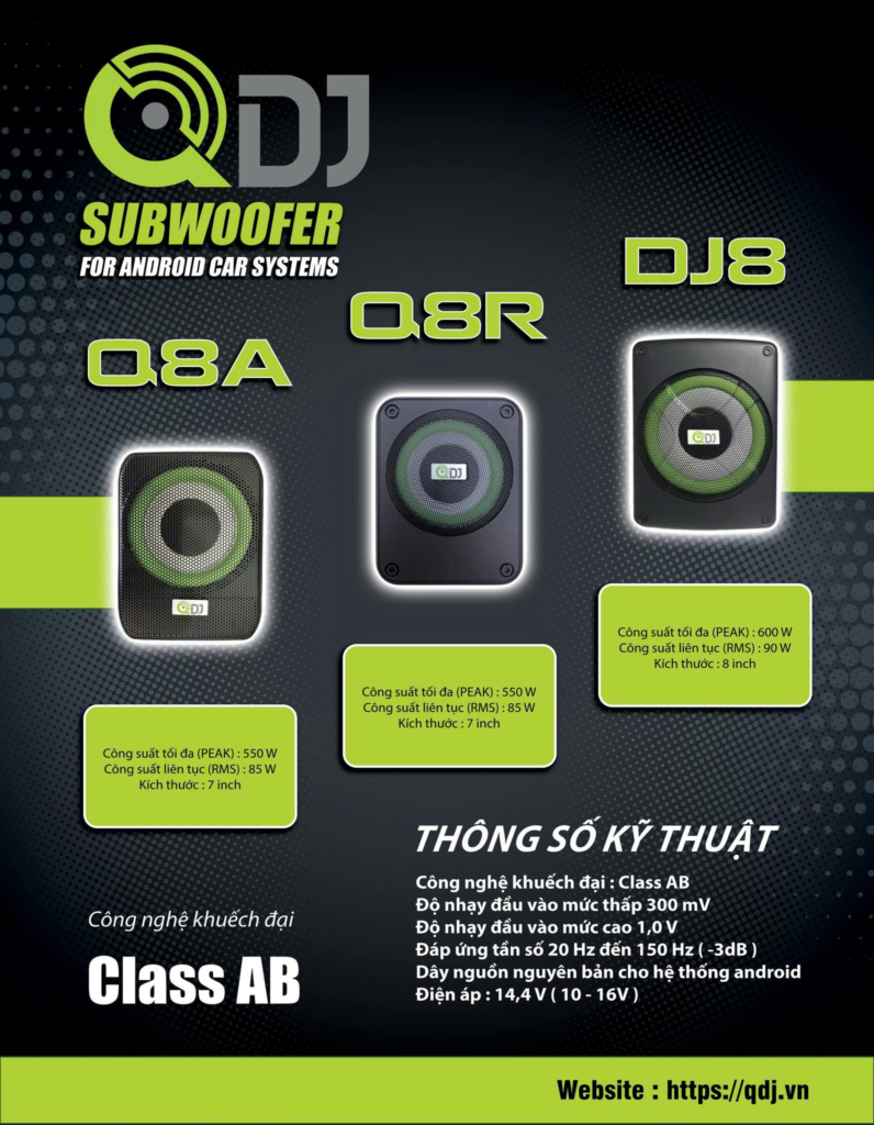 - Lắp đặt gọn nhẹ: Các dòng Sub điện gầm ghế của QDJ được thiết kế nhỏ gọn, không chiếm diện tích xe nhưng hiệu quả âm thanh mang lại cực kỳ rõ rệt.