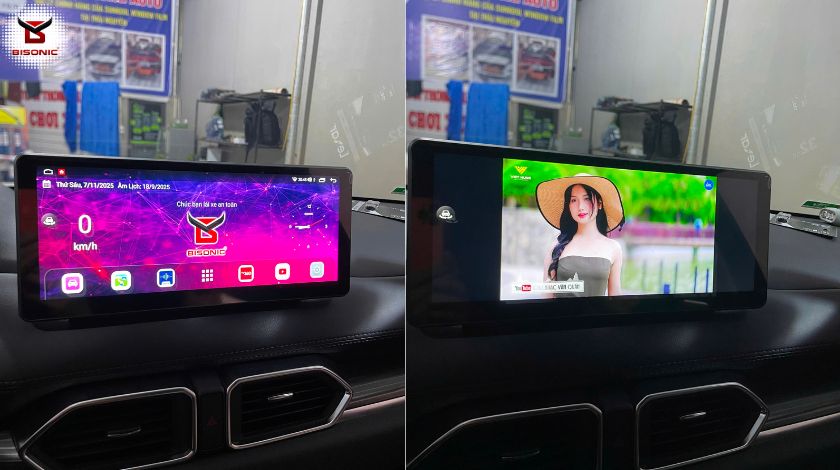 Màn hình zin của CX5 chỉ 7-8 inch, viền dày. Khi nâng cấp lên Màn hình Bisonic, bạn nhận được: